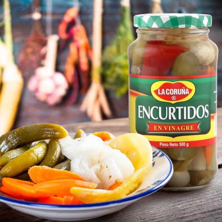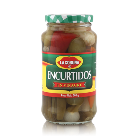 Exquisita combinación de verduras, perfecta para acompañar cualquier tipo de receta, desde platos fuertes, como aperitivos, a modo picoteo o en combinación con otras preparaciones, incluso en ensaladas. Su sabor especial concedido por un toque especial agrio y suave picante del vinagre, permite disfrutar de un producto muy versátil que enriquecen todo tipo de platos, perfectos para usar como aderezos o complemento  en sándwiches y hamburguesas.